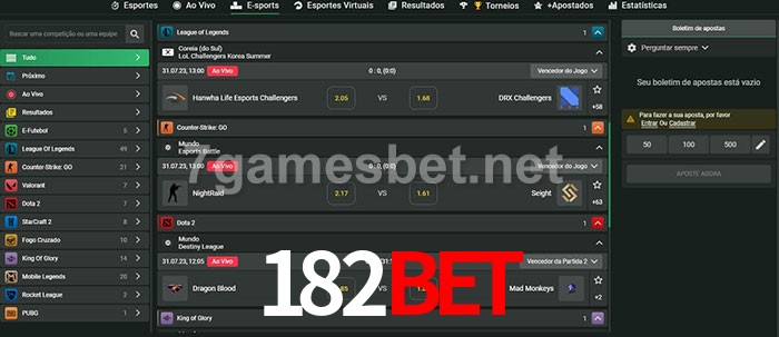 O 182bet oferece uma grande seleção de opções de apostas em e-sports com probabilidades competitivas